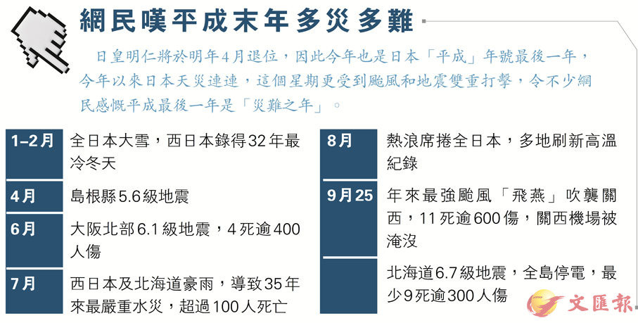 網民嘆平成末年多災多難