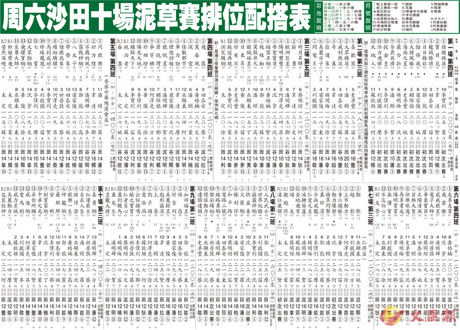 周六沙田十場泥草賽排位配搭表