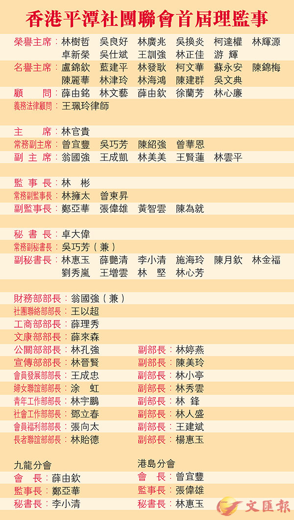 香港平潭社團聯會首屆理監事