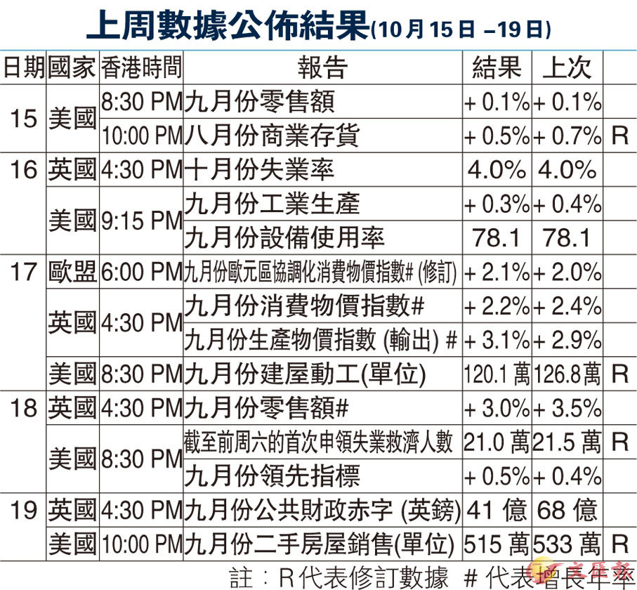 上周數據公佈結果(10月15日 -19日)