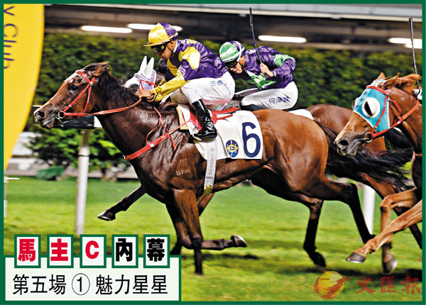 第五場、第四班、一○○○米。「魅力星星」(圖6號)蔡廄早熟快馬,上季初跑谷草千二,立即以一放到底的姿態取勝,輕易彈甩亞、季軍「快樂魔王」及「銀亮之星」一乘;跟手再戰C欄同程,鬘苭J胯下再次一放迄終,擺明是一員谷草專家。而今縮爭一千米,只要快閘放出便有機會再報捷。