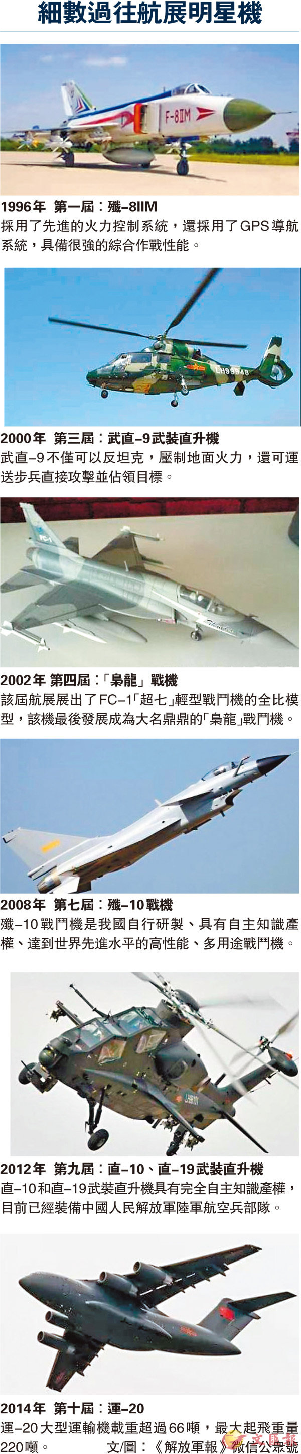 該屆航展展出了FC-1「超七」輕型戰鬥機的全比模型,該機最後發展成為大名鼎鼎的「梟龍」戰鬥機。
