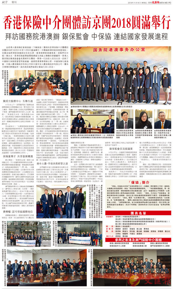 ¥Ñ»´ä¤H¹Ø«OÀI±q·~û¨ó·|¡]¤UºÙ«O¨ó¡^Äw²Õªº»´ä«OÀI¤¤¤¶¹ÎÅé³X¨Ê¹Î2018©ó10¤ë31¤é¦Ü11¤ë3¤é¶êº¡Á|¦æ¡A¤¤Áp¿ì¸gÀÙ³¡°Æ³¡ªø¹p®ü¬î¡B¥þ°ê¬F¨ó¸gÀÙ©eû·|°Æ¥D¥ô®e¥Ã¸R¡B»´ä¿ïÁ|©eû·|©eû¡]«OÀI¬É§O¤À²Õ¡^³¯ª¢¥ú¡B»´ä«OÀI·~Áp·|¹ØÀIÁ`·|¥D®u¼Ú¤§¬À¾á¥ôºaÅAÅU°Ý¡A»´ä¤H¹Ø«OÀI±q·~û¨ó·|·|ªø¶Àºö¦~¥ô¹Îªø¡A±a»â¤@¦æ20¦h¤H«e©¹¥_¨Ê¡A³X°Ý¤F¤¤°ê»È¦æ«OÀIºÊ·þºÞ²z©eû·|¡B°ê°È°|´ä¿D¨Æ°È¿ì¤½«Ç¡B¤¤°ê«OÀI¦æ·~¨ó·|¡B¤¤°ê¤H¹Ø«OÀIªÑ¥÷¦³¤½¥q©M¤¤°ê¥¦w¤H¹Ø«OÀIªÑ¥÷¦³¤½¥q¡AÀò¦U¤è»â¾Éªº¼ö±¡±µ«Ý¡A»P¤º¦a«OÀI¬ÉÀsÀY¥ø·~¶i¦æ²`¤J¥æ¬y¡C