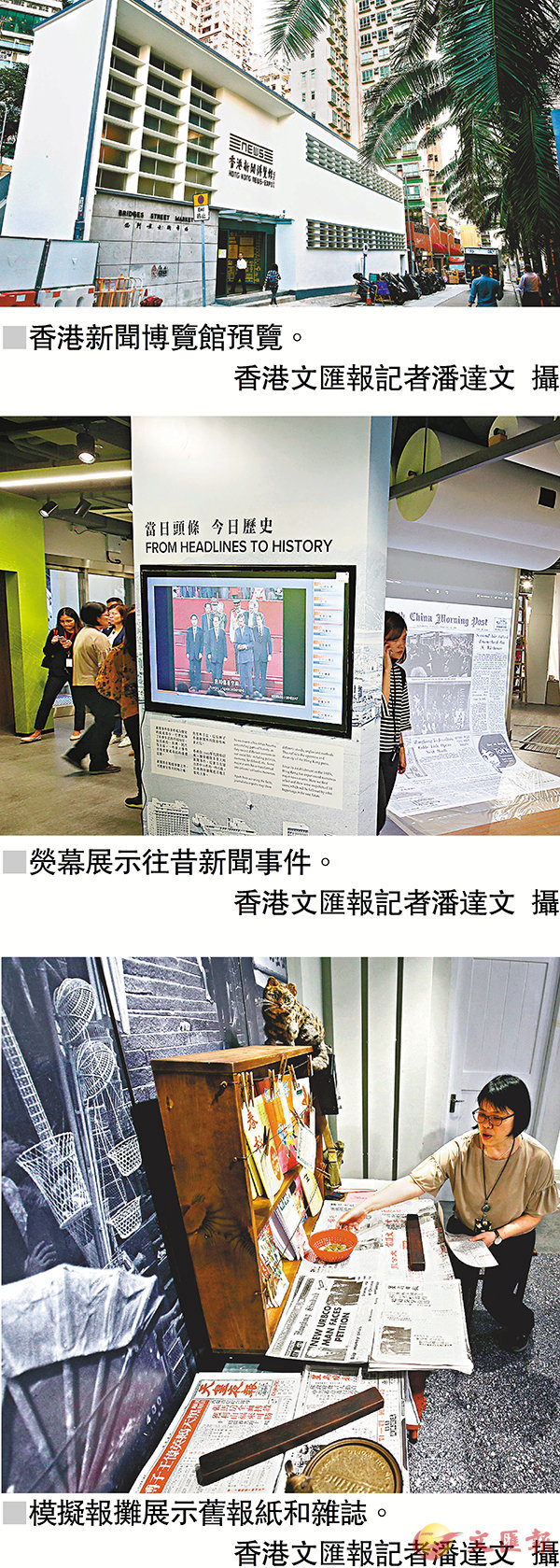 香港文匯報訊(記者 文森)位於中環必列雂h街的香港新聞博覽館,將於下月5日開幕,市民除了可透過展出的珍貴舊新聞器材、新聞片段及報章,了解報章、電台及電視新聞在過去數十年的變遷,更可體驗當主播或上頭版的滋味,公眾最快可於12月底預約參觀。