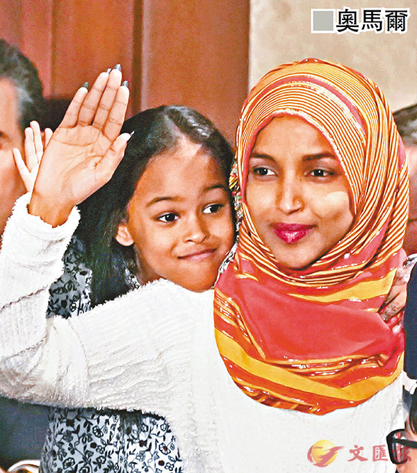 37歲的奧馬爾在23年前以難民身份,從肯尼亞移民美國,是中期選舉中當選的歷來首兩名穆斯林女性之一。她前日在社交網站發文,顯示她在家人陪同下,身穿頭巾及長袍進入議事堂宣誓就職。她宣誓時使用的,則是第3任總統傑佛遜所擁有的1734年版英譯本《可蘭經》。