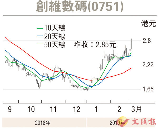 美股隔晚雖急跌逾200點,不過內地A股持續強勢,帶動港股急跌後回穩,由最多跌225點,一度重上29,000關,最後收報28,961點,微升2點,成交逾1,186億元。人大會議《政府工作報告》有關減企業稅及經濟增長目標,消息中性偏好。耐用消費製造業股受捧,上周一推薦的創維數碼(0751)昨大升9.6%,突破250天線,可續持有。