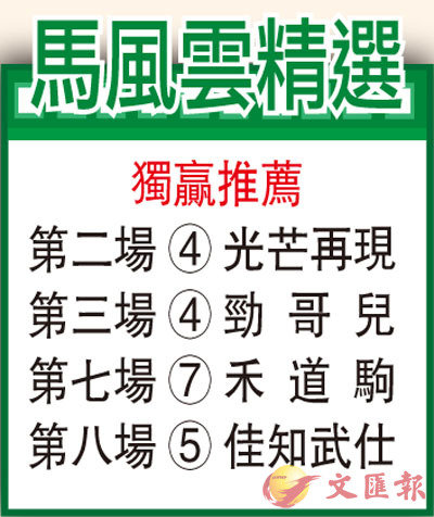 「佳知武仕」助手踱,走來渾身是勁,神態活躍,毛色明艷照人,火氣又見提升,埋門狀態起得甚好。