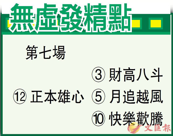 今晚跑馬地八場草地賽用C跑道競逐,今次是季內第七次使用此跑道,上次使用為二月二十日,當日草地度地儀指數為2.69,場地本來為好地,第四場開始改為好地至快地。當日八場頭馬全部是排七檔以內起步,巧合地有四場是排二檔,由此可見當日的C跑道對排內檔起步的馬匹非常有利。跑法方面,當日八場頭馬清一色是使用跟前或放頭跑法。當日場地指數偏低,場地乾快,對跟前跑的馬匹十分有利,若要後上取勝難度極高。總括來說,當日利內檔及利前領,是一條十分傳統的C跑道。今季在C跑道贏馬最多的練馬師是丁冠豪,贏了五場,之後是姚本輝、高伯新、蔡約翰及霍利時各贏了四場。騎師方面,今季贏馬最多的是潘頓,贏了十一場,之後是田泰安及黃俊各贏了五場。今次賽事推介列陣第三場三班千二米霍利時馬房的「正本雄心」,歷來兩戰谷草C跑道全勝,今次可照辦煮碗再勝。