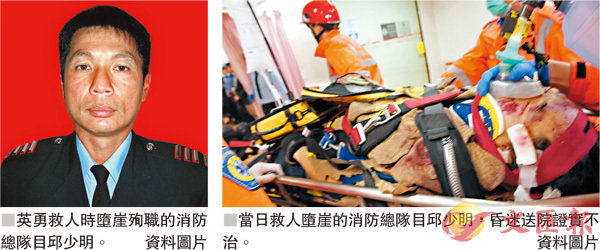 香港文匯報訊(記者 葛婷)隸屬田心消防局的50歲消防總隊目邱少明,前年3月在馬鞍山吊手岩拯救兩名行山人士時,疑受惡劣天氣影響,霧中失足墮崖重傷,送院證實不治,死因庭昨為死者展開死因研訊。