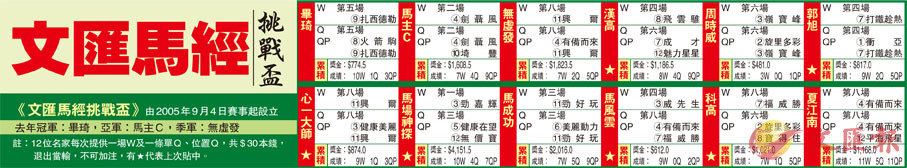 《文匯馬經挑戰盃》由2005年9月4日賽事起設立