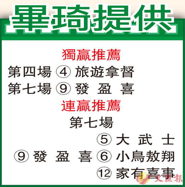 「旅遊拿督」助手彭福公園踱一圈,扣住韁約束沿近欄輕鬆操踱,伸長馬頸展開揚闊步扯韁越行越有氣勢,步大力雄,身茁壯毛色泛現光采,狀態吸引。