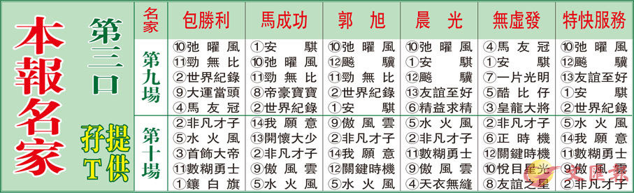 本報名家第三口孖T提供
