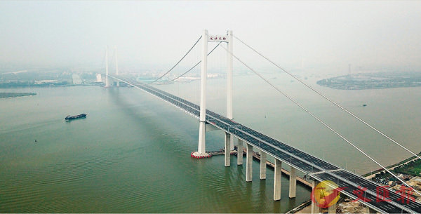 4月2日,作為粵港澳大灣區內又一條重要過江通道的南沙大橋正式通車。南沙大橋全長12.89公里,雙向八車道,設計行車速度為100公里每小時,大橋開通後可極大緩解珠江口東西兩岸的交通壓力。圖為當日無人機拍攝的南沙大橋。 圖/文:新華社