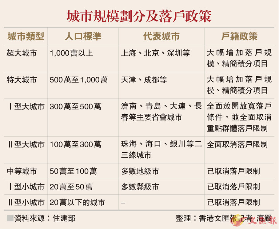 城市規模劃分及落戶政策