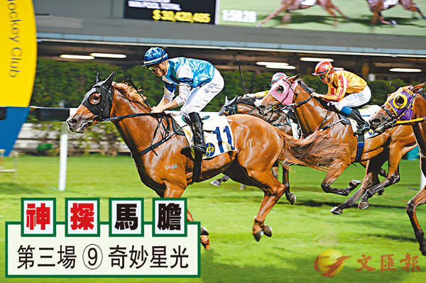 第三場、第五班、一八○○米。「奇妙星光」(圖11號)悉心操練,近試渾身是勁,氣勢增強不少,銳氣正盛,狀態進入勇境。「如沐春風」拚後踱步居多,神色仍靚,步勁亦充足,態況回勇不少,整體勝上回。「競駿飛鷹」動態一如早前認真,馬身飽滿結實,毛色深潤奪目,論狀態正處全勇境。「戈寶」快試火猛活力十足,步勁貫注,狀態已勇。
