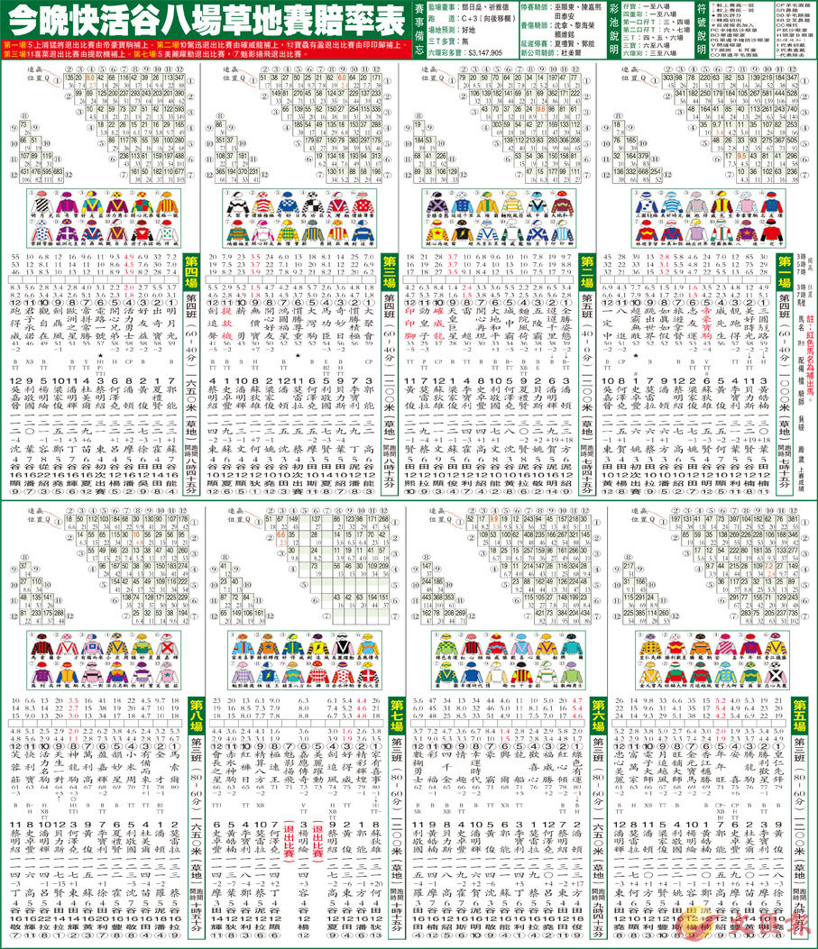 今晚快活谷八場草地賽賠率表