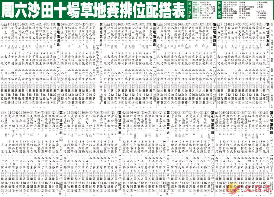 周六沙田十場草地賽排位配搭表