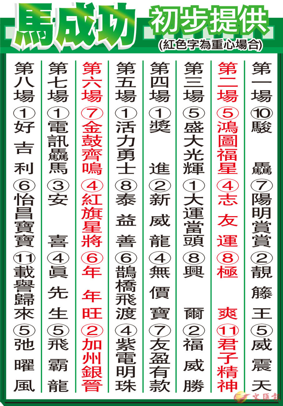 馬成功初步提供