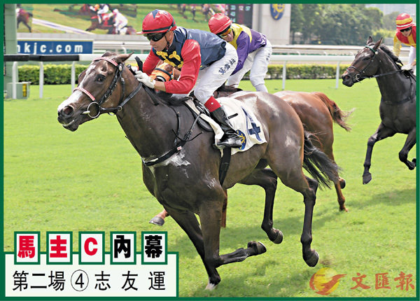 第二場、第四班、一二○○米。「志友運」(圖4號)五歲仔上賽角逐三班谷草一千米,結果留得太後以致姍姍來遲,力追下只跑第三;今次復爭千二米途程更為合適,翻看去季曾在四班谷賽力壓「富萬家」贏馬,具不俗分量;足證今仗應係出擊現真身時候。