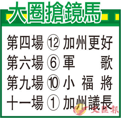 「加州更好」助手試八百米,在受到約束下沿欄而跑,出腳靈活自然,步法上乘,勇況與日俱增。