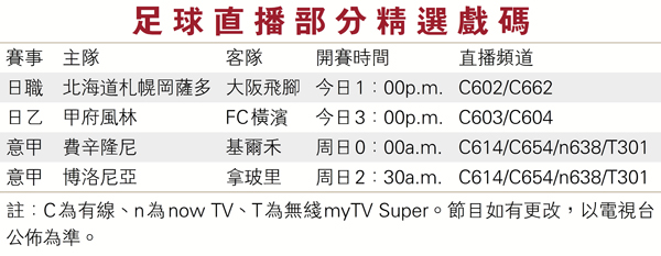 足球直播部分精選戲碼