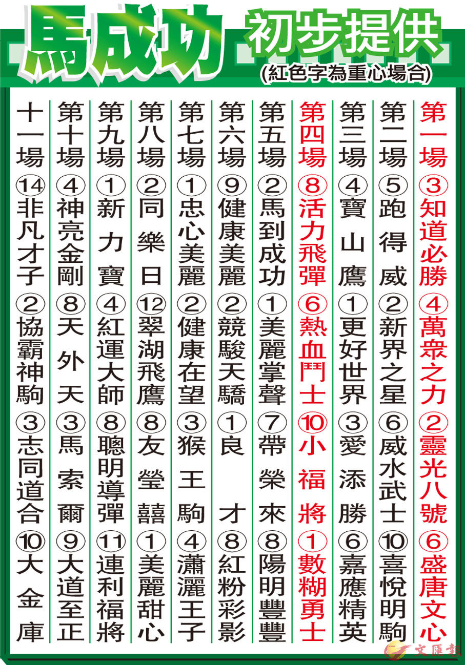 馬成功初步提供