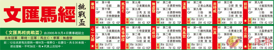 《文匯馬經挑戰盃》由2005年9月4日賽事起設立