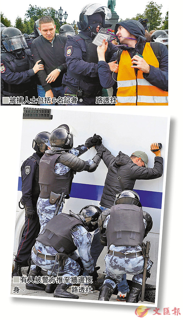 俄羅斯反對派上周發起非法集會,抗議多名莫斯科市議會選舉的候選人被取消參選資格,最終有逾1,300名示威者被捕。反對派無視當局警告,昨日再次在未獲警方批准下舉行示威集會,警方出動大量警力依例執法,驅散示威者。據監察組織「警察訊息組織」(OVD-Info)指出,最少600人被補,當中包括6名記者,並有最少6人受傷。
