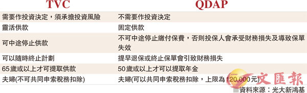 ¹L¥h¥»Äæ´¿¤¶²Ð¡u¦©µ|¤TÄ_¡v¡A¦ý¦³ÅªªÌ¤Ï¬M¥Ñ©ó½g´T¸ûµu¡A¥O¦³Ãö¤¶²Ð¥¼°÷¥J²Ó¡C¦]¦¹Ä~¹L¥h¨â´Á§Ú̬ÛÄ~¶i¤@¨B¤À¨É¦X¸ê®æ©µ´Á¦~ª÷«O³æ¡]Qualifying Deferred Annity Policy¡AQDAP¡^¡A¥H¤Î¦ÛÄ@Âå«Op¹º¡]Voluntary Health Insurance Scheme¡AVHIS¡^«á¡A¬O¦¸§Ú̱NÁ¿z¥i¦©µ|±j¿nª÷¦ÛÄ@©Ê¨Ñ´Ú¡]Tax Deductible MPF Voluntary Contributions¡ATVC¡^¡C