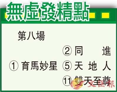 今日跑馬地馬場上演九場草地賽事,使用C+3跑道並向後移欄競逐,此跑道內欄向中央移入十一米,為谷草多條跑道之中最窄一條,直路長三百三十五米,比A跑道長廿三米,今次是季內第一次使用C+3跑道,上次使用是五月一日,當日草地度地儀指數為2.71,場地掛牌本來為好地,第六場開始改為好至快地。當日舉行八場賽事,八匹頭馬只有一駒「君子承諾」是排九檔,其餘七匹頭馬均是排內檔,由此可見當日的跑道大利內檔馬。跑法方面,八匹頭馬中有五駒是採取後追跑法,只有三匹是跟前或放頭,當日的跑道有利後追馬。上季在C+3跑道贏馬最多的練馬師是方嘉柏,贏了七場,之後是丁冠豪、呂健威及告東尼各贏五場。騎師方面,上季在C+3跑道贏馬最多的是潘頓,贏了十場,之後是田泰安贏七場。今次推介「育馬妙星」,歷來在谷草C+3跑道獲兩冠兩季,分利逢路合時機成熟,可睇高一線。