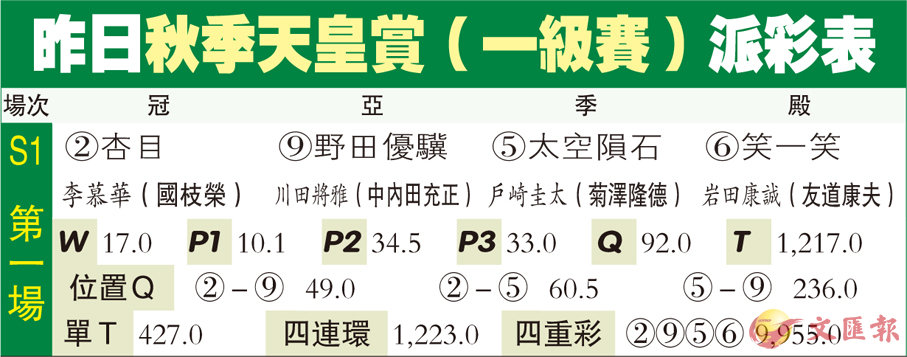 昨日秋季天皇賞(一級賽)派彩表