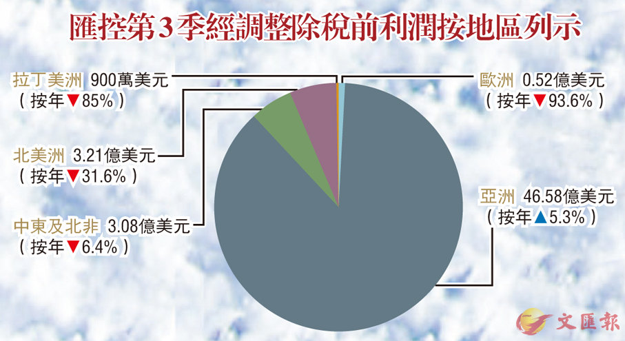 匯控第3季經調整除稅前利潤按地區列示