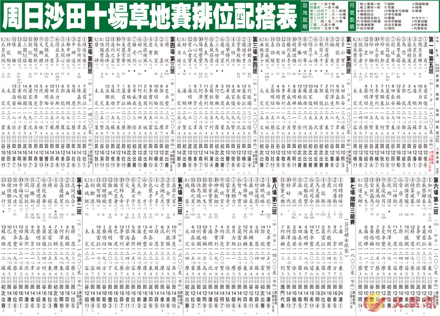周日沙田十場草地賽排位配搭表