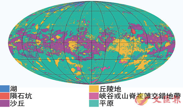 美國太空總署(NASA)科學家前日於科學期刊《自然天文》,發表土星最大衛星「土衛六」的首張全貌地質圖,顯示土衛六存在大片平原,由冰封有機物質形成的沙丘,以及液態甲烷積聚而成的湖泊,相信是太陽系中地質最多樣化的星體,而有機物是形成生命的關鍵,意味土衛六地殼下的液態海洋,有可能孕育生命。