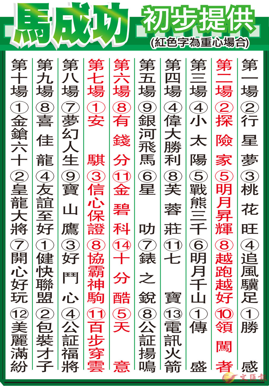馬成功初步提供
