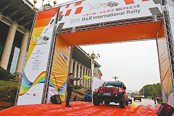 香港文匯報訊(記者 丁樹勇 昆明報道)2019「一帶一路.七彩雲南」國際汽車拉力賽昨從昆明發車(見圖),45輛越野車組成的車隊將在未來18天歷程5000餘公里,途徑老撾、泰國、緬甸後返回中國,沿途並將舉行多場賽事及經貿、文化交流活動。途中將於中國雲南景洪至磨憨段舉辦集結賽、在泰國彭世洛舉辦公路集結賽、在緬甸仰光舉辦場地越野賽、在雲南西雙版納舉辦熱帶雨林越野賽等4場汽車賽事,並在緬甸曼德勒舉辦藤球賽事。