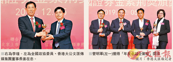 在第九屆中國證券金紫荊獎頒獎禮上,中國中車股份有限公司董事長劉化龍獲得新中國成立70周年「卓越貢獻企業家」獎,獎項由全國政協委員、香港大公文匯傳媒集團董事長姜在忠頒發,中車(香港)董事長李瑾代領。劉化龍傳承中車「連接世界,造福人類」的使命,銳意進取,大膽探索,以運籌帷幄的戰略智慧和科學專業的管理才能,推動中車高質量發展,領先同業,快速前行。在他的帶領下,中車堅持自主創新、開放創新和協同創新,爭做「中國製造2025」和「互聯網+」的創新排頭兵,在國際舞台屢創佳績。