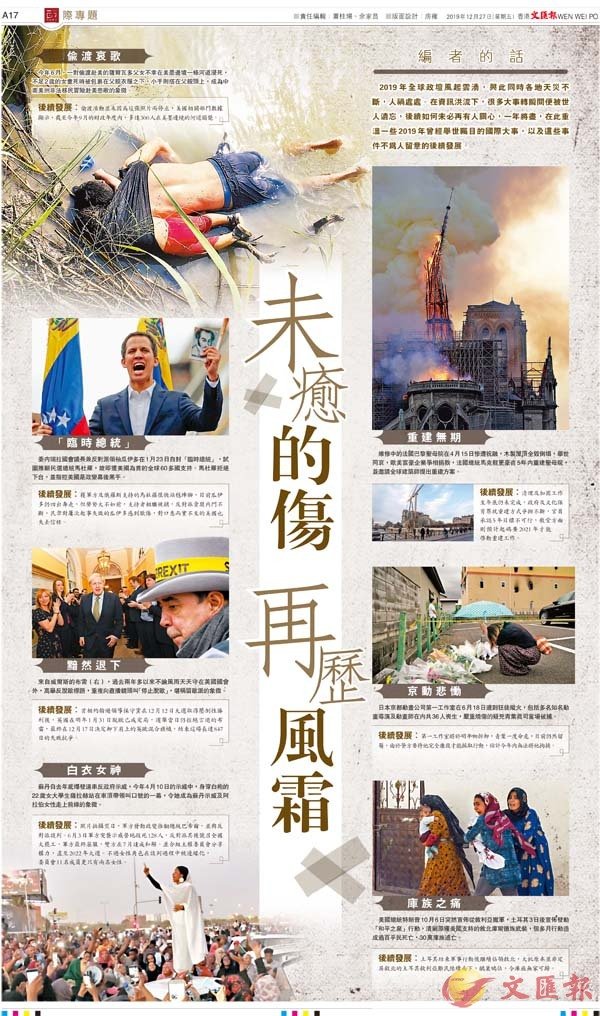 【編者的話】2019年全球政壇風起雲湧,與此同時各地天災不斷,人禍處處。在資訊洪流下,很多大事轉瞬間便被世人遺忘,後續如何未必再有人關心,一年將盡,在此重溫一些2019年曾經舉世矚目的國際大事,以及這些事件不為人留意的後續發展。