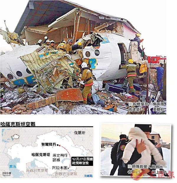 經中國駐哈大使館與駐阿拉木圖總領館確認,失事客機上有一名中國公民,幸未在事故中受傷,使館和總領館將繼續與當地警方保持密切聯繫。 ■綜合報道