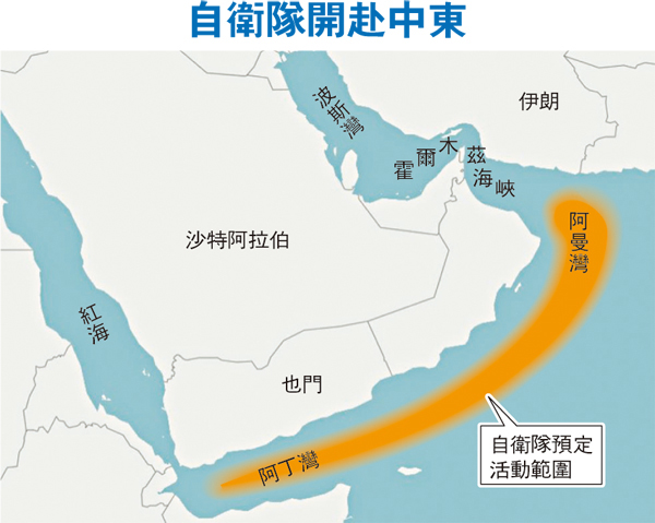 內閣官房長官菅義偉昨日在例行記者會上公佈消息,指出中東地區的和平及穩定,對國際社會、包括日本的和平繁榮而言非常重要,而且中東是全球重要能源產地,日本90%進口石油均來自中東,因此需要確保日本船舶在當地航行安全。