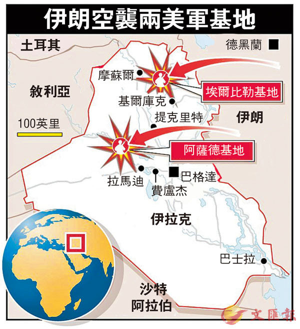 伊朗昨日發射導彈襲擊位於伊拉克境內的兩個美軍基地,其中阿薩德空軍基地屬美國在伊拉克的第二大空軍基地,美國總統特朗普前年突然到訪伊拉克,是他上台以來首次到訪戰區,當時亦到阿薩德基地探望美軍。