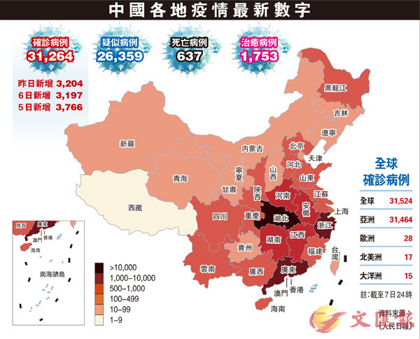 中國各地疫情最新數字