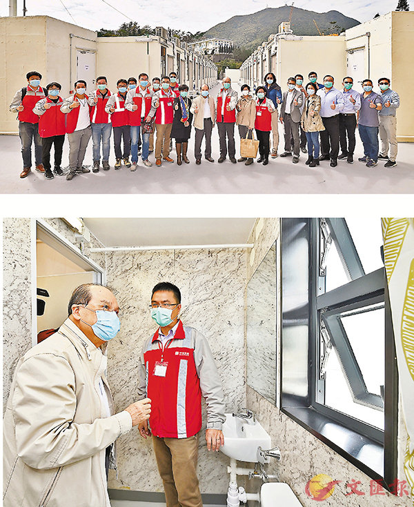 特區政府早前決定利用鯉魚門公園度假村的空地增建檢疫單位,首階段工程僅不足一個月就完工,政務司司長暨防疫抗疫基金督導委員會主席張建宗昨日特地到場視察即將投入使用的新檢疫單位,並了解民眾安全服務隊管理檢疫中心的情況。 香港文匯報記者 文森