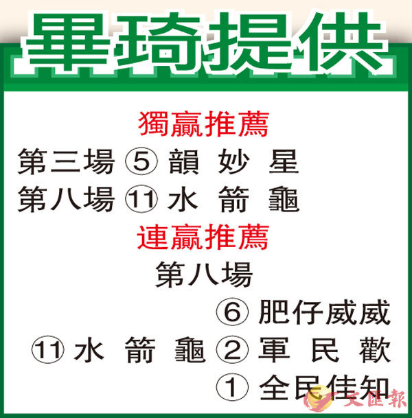 「水箭龜」助手彭福公園快踱一圈,動作敏捷,步伐輕快力度均勻,馬身紮實,神態活躍,進度不俗。
