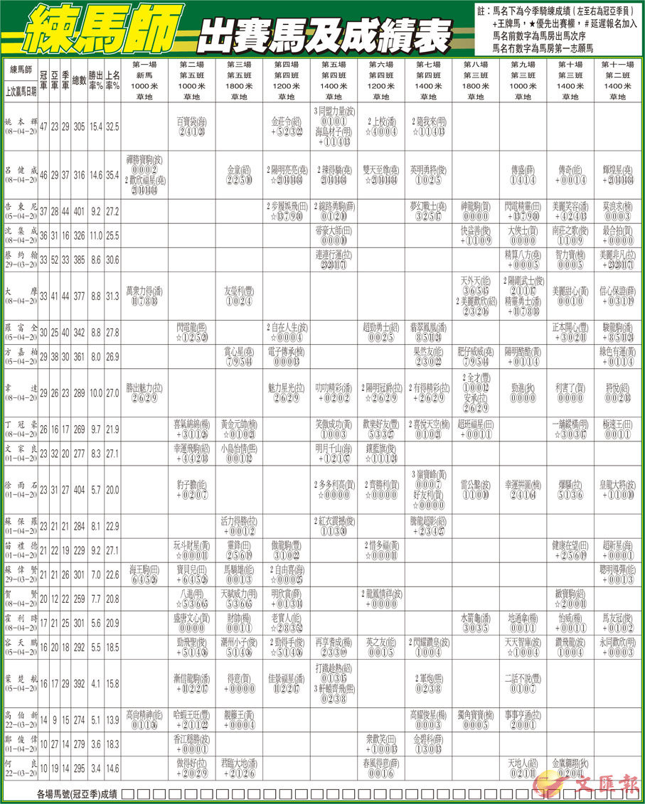 練馬師出賽馬及成績表