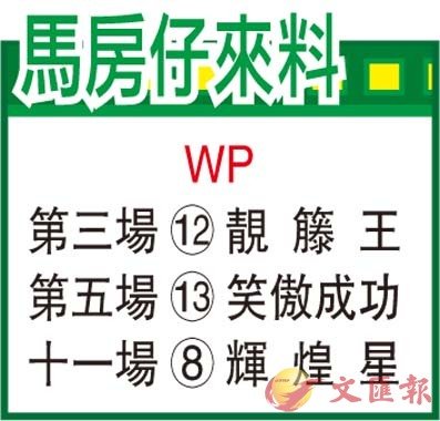 第三場、第五班、一八○○米。「靚籐王」今季只在田草千八得一冠成績,配田泰安負一一八磅輕磅一放到底贏馬,自後賽程所限,只獲得另一次跑此程機會,結果得第四名而回,至今再度列陣此程,只壑@一六磅,排二檔若出閘順利領放在前,又有機會爭取頭馬。