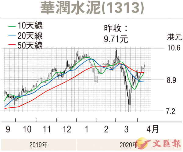 此外集團積極發揮旗下水泥、混凝土、骨科與裝配式建築業務的協同優勢,其中透過收購環球石材的新材料業務,促進集團戰略轉型,創造業務協同價值,冀能發揮產業一體化及核心競爭優勢。核心水泥業務方面,集團推動重點節能技術項目及強化物流管理,已完成旗下所有生產基地的技術升級,有助降低營運成本,前景看俏。現價預測市盈率8.8倍,股息率逾6厘,建議可於9.5元以下吸納,目標價10.5元,跌穿8.7元止蝕。
