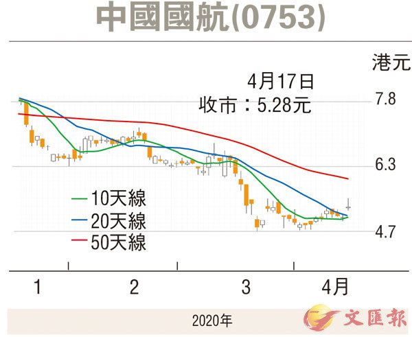 受美股道指期貨在亞洲時段急升刺激,昨日A股及港股均見造好。上證綜指走高至2,838點報收,升19點或0.66%。至於港股升勢猶佳,最多曾漲逾600點,收市報24,380點,仍升374點或1.56%。市場熱炒歐美有序復工復市概念,刺激低沉多時的中資航空股現較像樣的反彈,尤以南方航空(1055)走高至3.5元,升0.24元或7.36%最突出。