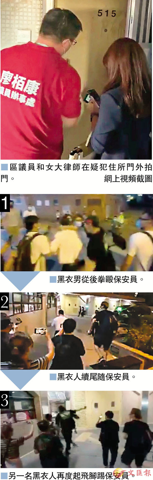 此外,當探員拘捕疑犯離開後,廣源h內仍聚集好多人,其間有人更追打保安員,場面一度非常混亂;O記高級警司李桂華反問之前不斷拍門的區議員,如果是關心區內的事情,是否亦要關心該名保安員,可否盡責地呼籲聚集群眾平靜及保持克制。