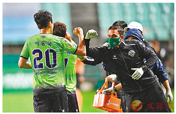 受疫情影響推遲了兩個多月才展開新賽季的韓國職業足球聯賽昨天上演了揭幕戰,結果衛冕冠軍全北汽車於空場之下,以1:0力克上屆韓國盃盟主水原藍翼。球隊採取了嚴密的防疫措施,包括後備席職球員戴上口罩,以擊拳或手臂的方式代替握手等身體接觸,以及不以大動作慶祝入球等等。 法新社